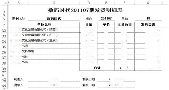 2.2.1:根据刊物发行记录。自动统计汇总生成本期发货明细表;