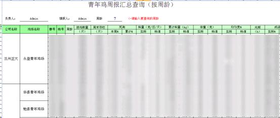6、青年鸡周报汇总查询(按周龄)表可以查询某一周龄的所有鸡场的该周的数据。此表根据需要按周查询。