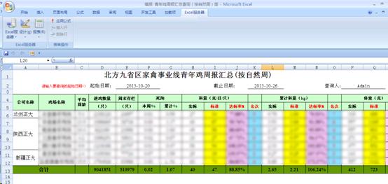 用勤哲Excel服务器实现 正大公司鸡事业线报表查询系统