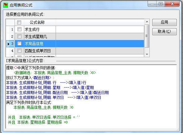 <数据筛选: 间隔时间(dd,本报表.商品信息_主表.起始日期,本报表.商品信息_主表.结束日期) / 本报表.商品信息_主表.排期天数 >= 序号_明细.行