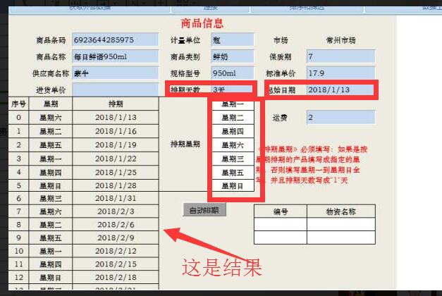 序号模板的目的是能够通过起始日期和截止日期以及排期天数插入正确的行,从而生成指定的配送日期。