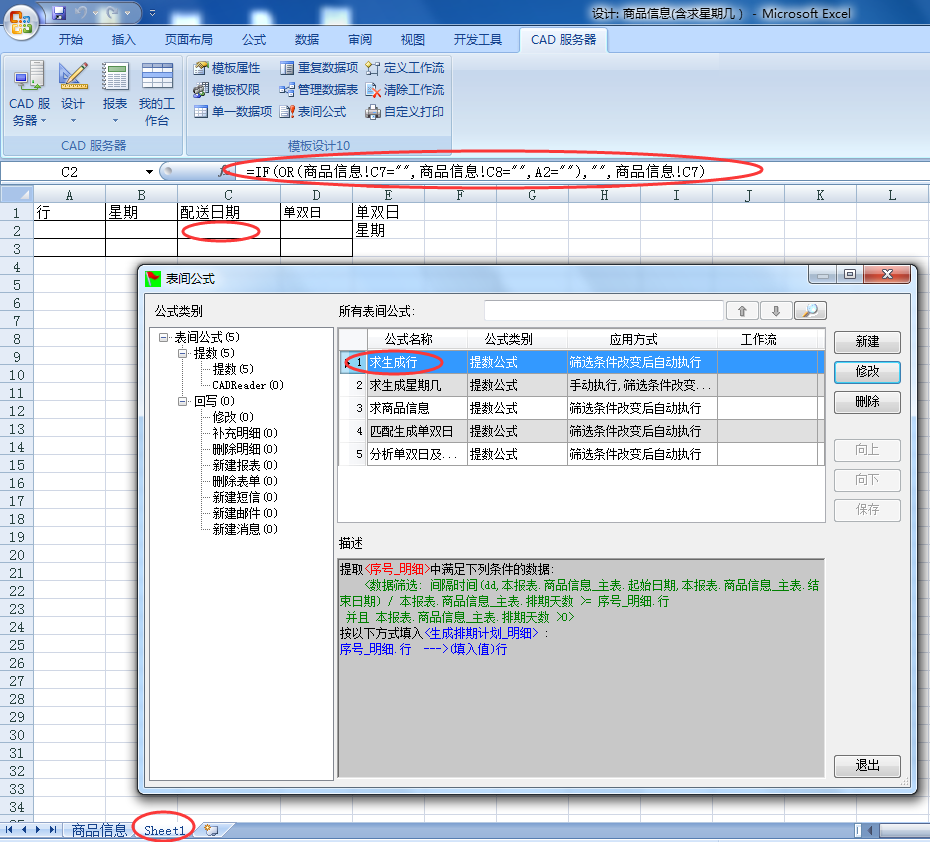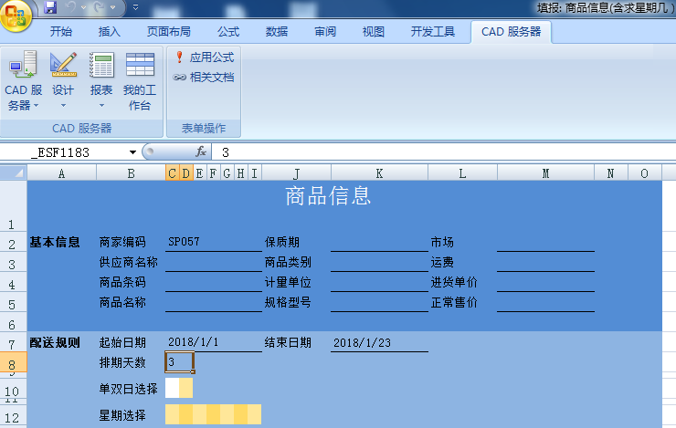 如图1和图2所示,客户希望通过排期天数,星期,以及起始日期控制排期计划,针对以上问题,需要对模板做一个改进,从而满足设计需要。