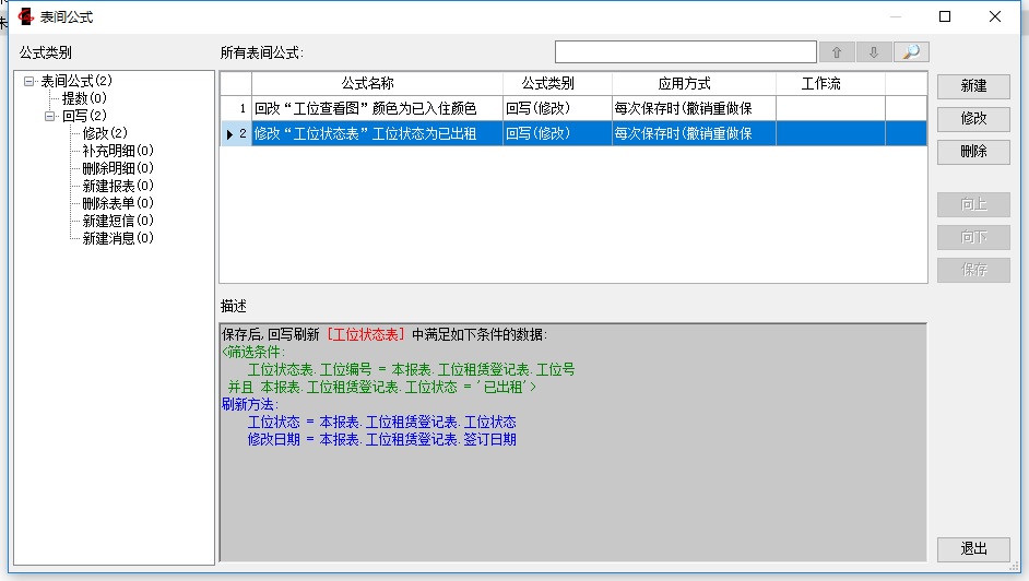 “工位退订表”从“工位租赁表中提取数据,保存时删除”工位租赁表“中此条数据,回写”工位查看表“中工位号为”工位号&空“,回写”工位状态表“工位状态为”空“;