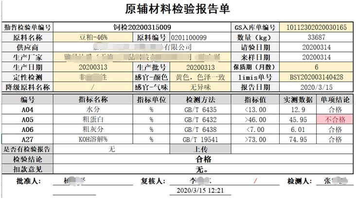 6) 对于检验不合格的原料,自动计算让步接收扣款金额;