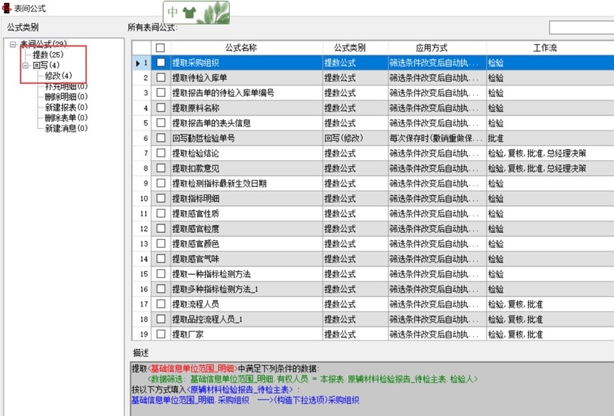 本表一共设置了29个表间公式。25个提数公式,4个回写公式。满足了表单使用过程中自动化应用的需求。