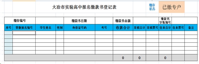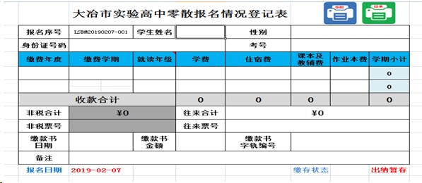 大冶市实验高中自主信息化开发报名缴存系统