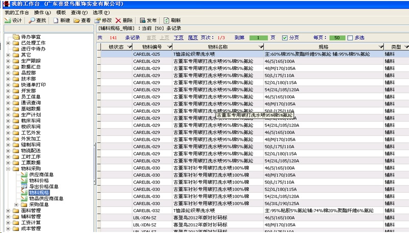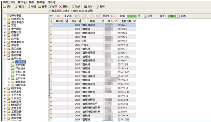 目前我公司建立起来的软件模块主要分成研发信息,生产数据,统计报表三大块,基础资料