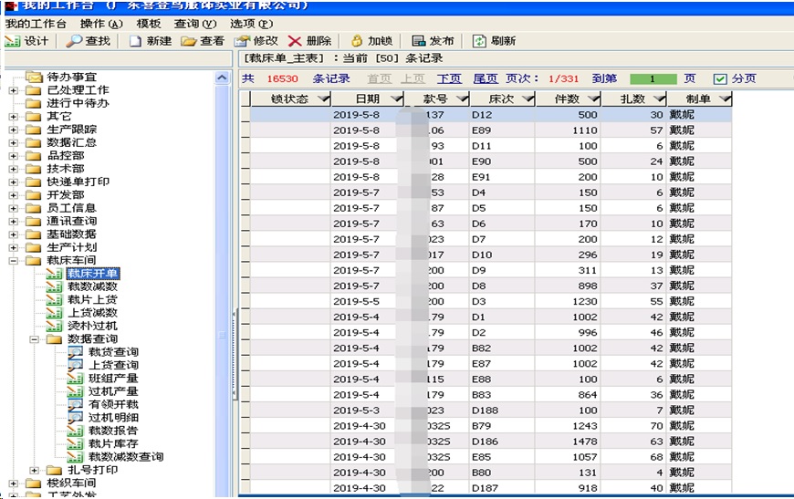 裁床开单录入信息