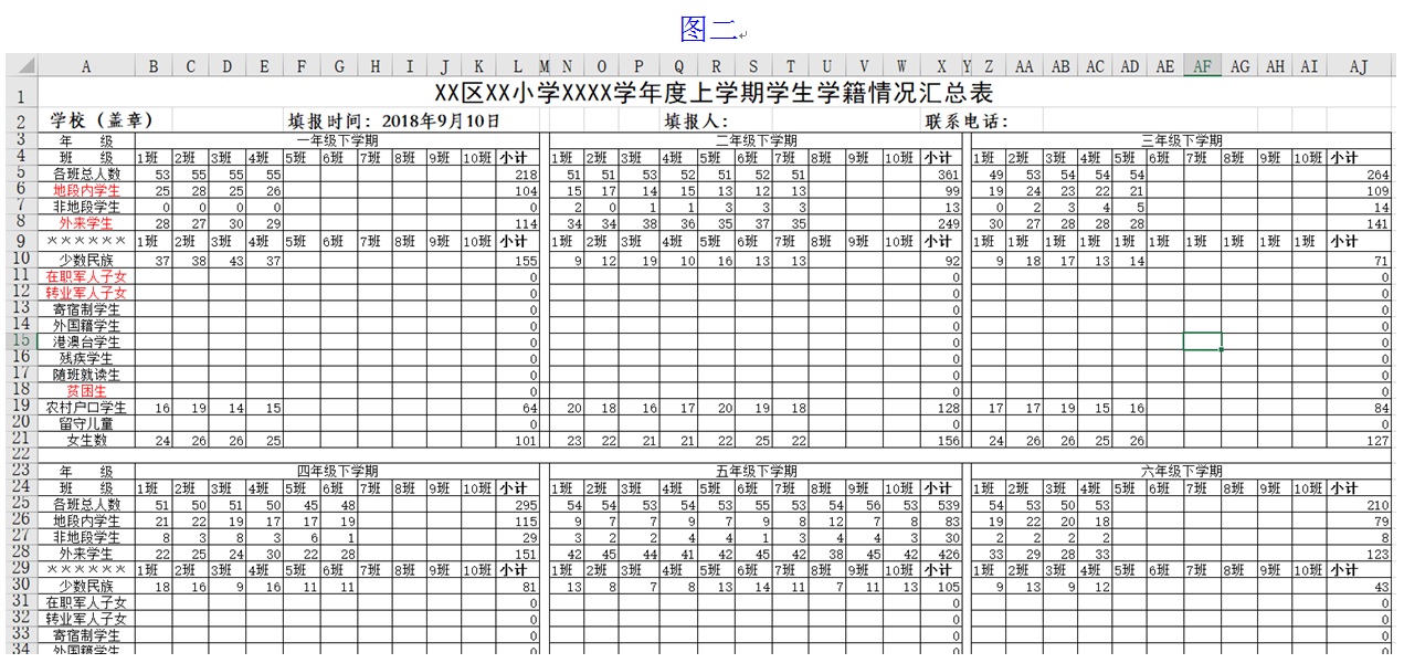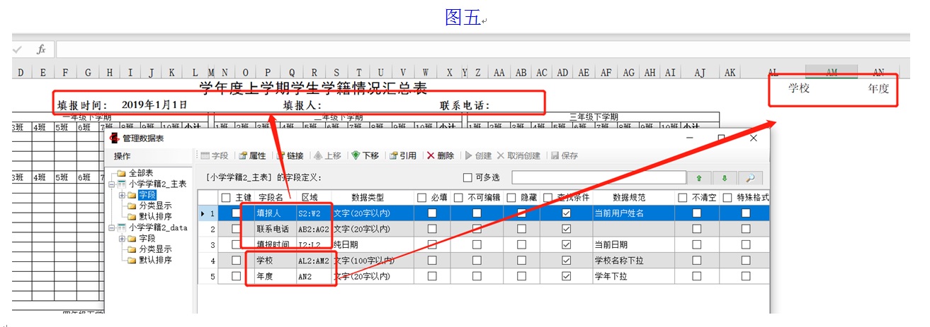 难点: a) 需要的数据分散在很多个字段里面,需要SQL知识转换数据源格式;b) 报表格式比较特殊,数据区域非连续,每个年级分为上下两个区域,如果做成多个子表,定义数据项和设置提数公式都非常复杂。