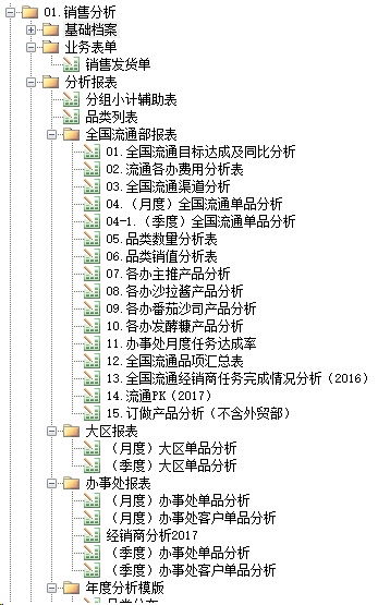 1. 销售分析模块:鸿兴公司是一家以生产和销售调味品为主业的企业,销售渠道以流通为主,营销网络遍及全国各地,每年的销售数据达几十万条之多。公司非常注重对于销售数据的分析和挖掘,定期对销售数据进行分区域、渠道、品类、客户等多维度分析。在引入ES系统之前,销售数据分析工作主要由销售数据员将ERP的销售数据输出为EXCEL文件,然后进行一系列数据处理和加工,最后得到领导需要的报表。由于报表体系较为庞大,每个月的销售数据分析通常需要一周左右才能完成。并且,随着公司的不断发展以及市场行情的变化,公司每年都会要求做一些新的分析报表,需要用海量历史数据进行对比分析,销售数据分析人员往往感到力不从心。在引入ES系统后,我们针对销售分析开发了一系列的模板应用,大大减轻了数据员的工作量,并且数据是以统一的标准样式保存在数据库里面,随时可以调取,既安全又便捷。这样一来,月度数据分析工作由原来两个人花一周时间才能完成,变成了一个人用一天就能完成,效果立竿见影!并且,有了ES作为后盾,一些以前想做而做不到的复杂的数据分析报表也得以实现,销售数据在公司经营决策中的作用也越来越凸显出来。