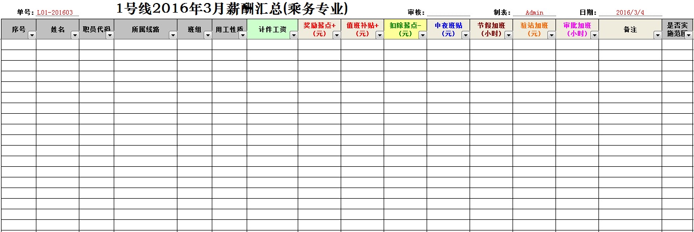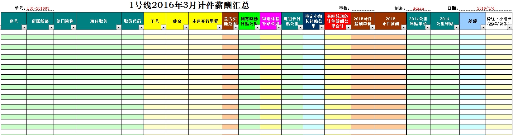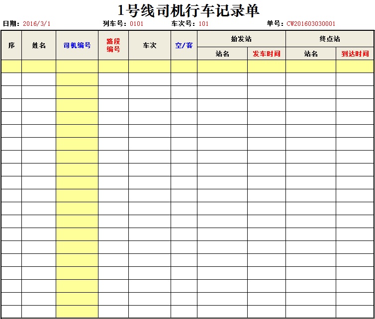 作为计件薪酬中最基础的司机行车记录单录入,是根据预先设置的线路里程(交叉表)、开行路段、司机编号等模板表单作为后台支持,以便在录入时自动对应。