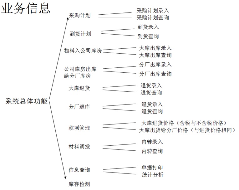 主要功能包括采购、入库、出库、库存调拨、退库等操作,引入条码管理,商品在采购时生成唯一条码,在到货后,库管员根据到货情况,手持数据采集器和便携式条码打印机,根据采购订单到现场,将条码现场打印并粘贴在物料上,并将物料扫码入库,在数据采集器中,只需扫码,即可将物料规格、数量、货位等信息,填入入库单中,大大提高的库房管理的准确度和效率,在出库、调拨等操作中皆采用条码管理,可对物料形成追踪,实时查询物料所在位置及所处状态。软件系统共分为以下三大部分: