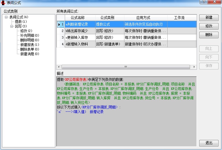 有时各分厂之间存在库存调拨的现象,针对此问题设置了库存调拨单,通过表间公式来自动实现调拨功能。