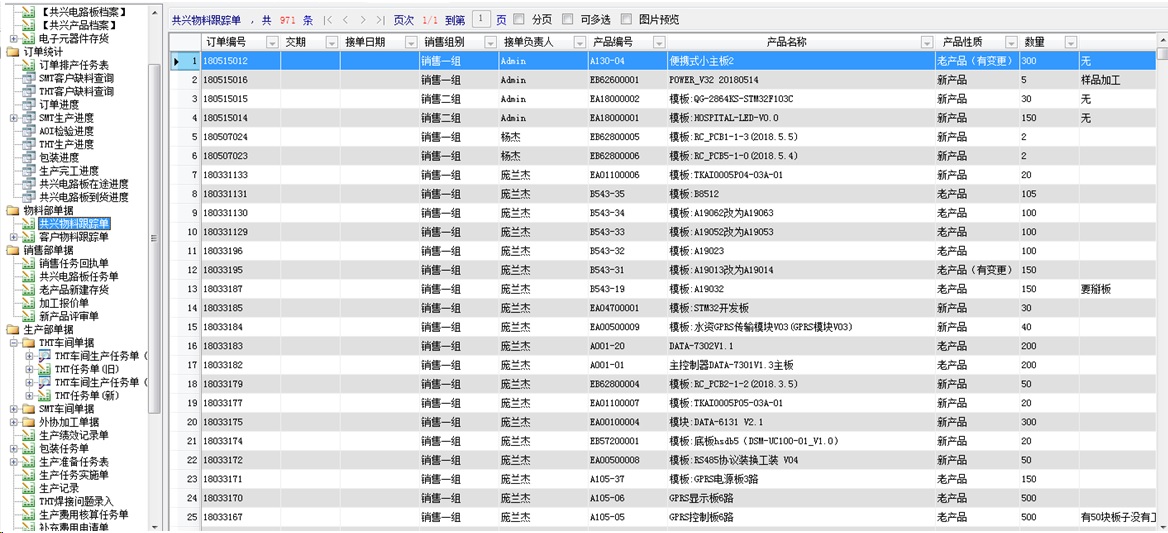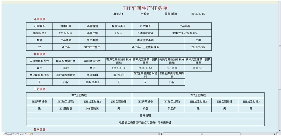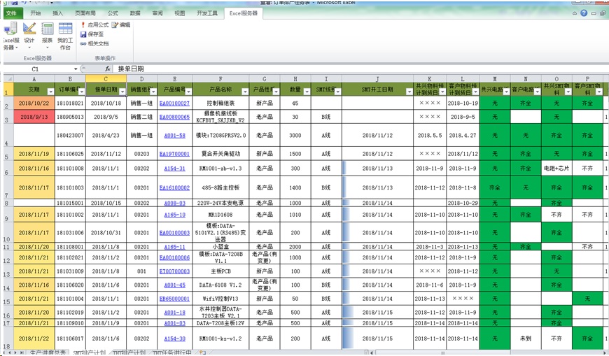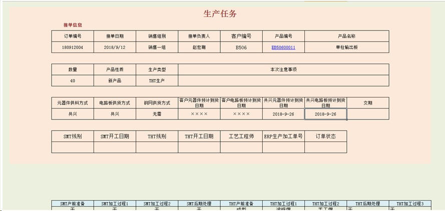 (1)下达SMT,THT排产计划跟踪生产进度总表,随时掌握生产业务情况