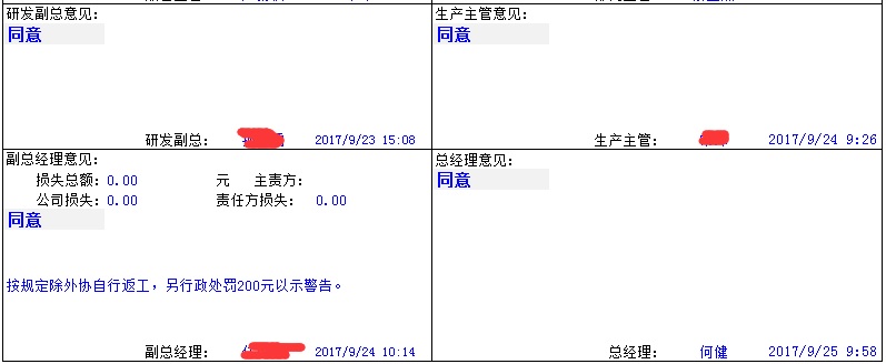 行政人员处罚直接与人事工资报表连接;供方处罚直接与应付申请连接,这样避免处罚没落地现象。