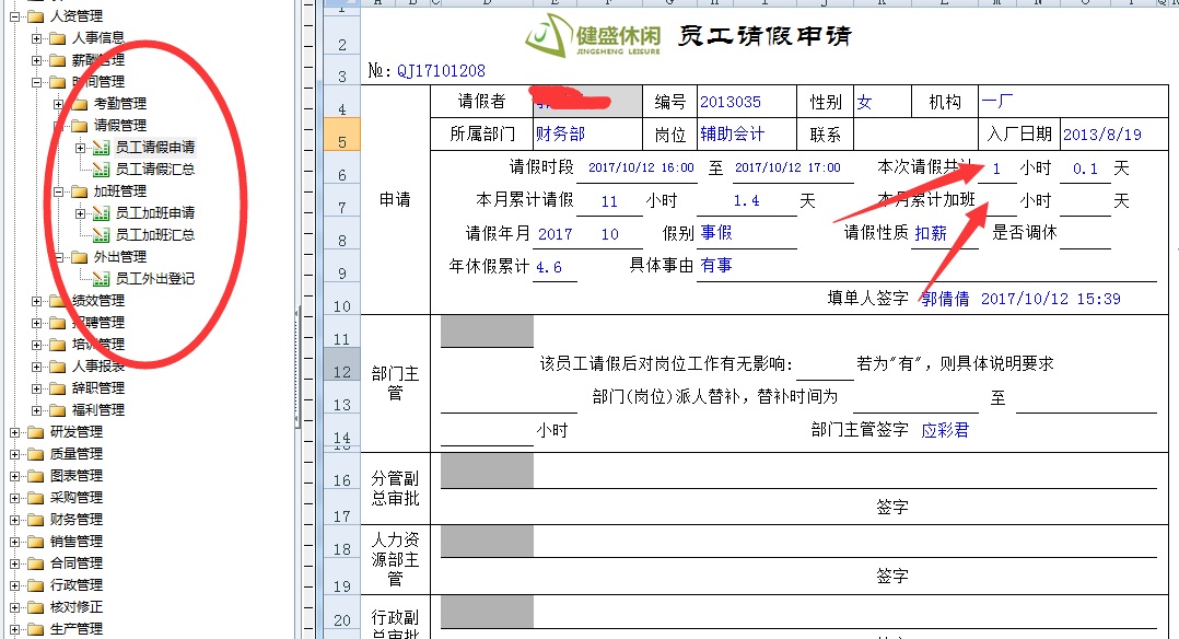 1、时间管理相关表格与公司考勤机数据连接,实现实时提取员工考勤打卡时间,同时请假申请和加班申请数据实现互动。