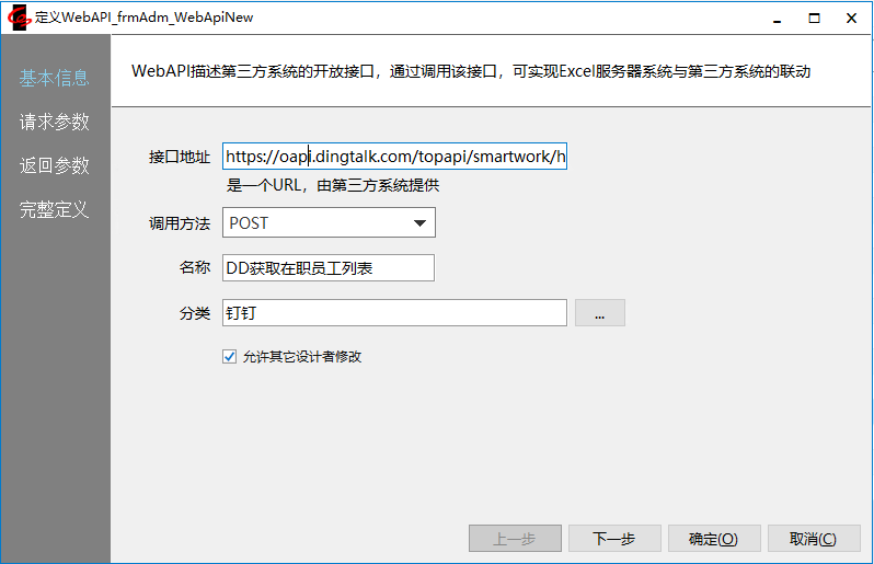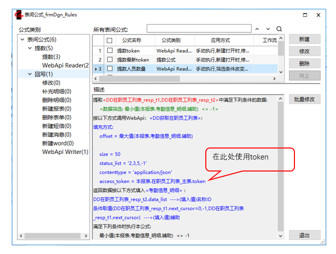 公式1:在模板【在职员工列表】中定义一个WebApi Reader公式:
