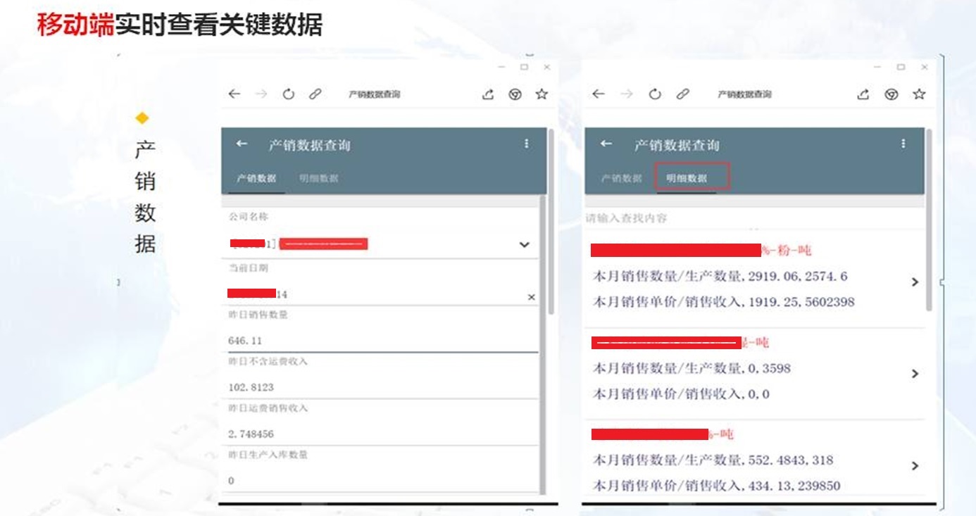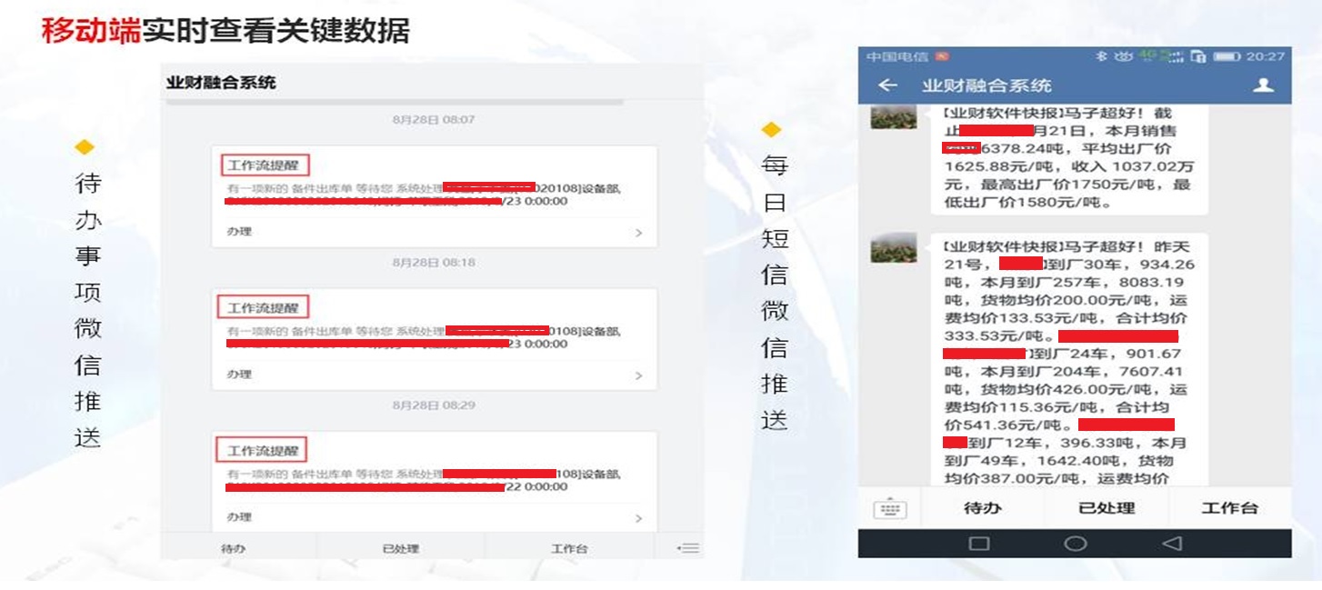 1. 移动端实时查看企业关键数据(产销数据,资金数据,库存价格等)。