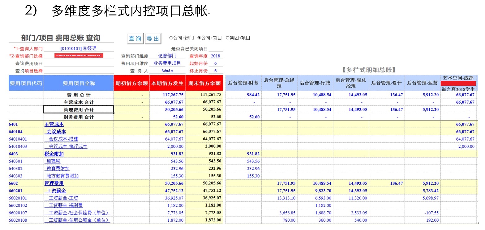2) 多维度多栏式内控项目总帐