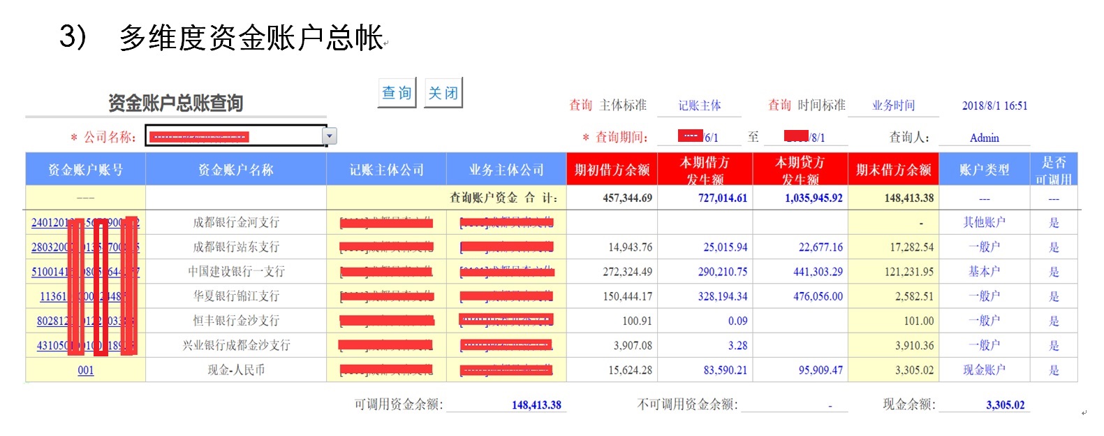 3) 多维度资金账户总帐