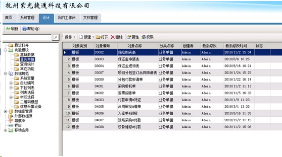 目前根据公司的业务,在勤哲上构建了一下几个模块:基础数据、业务单据、查询统计、其他功能。
