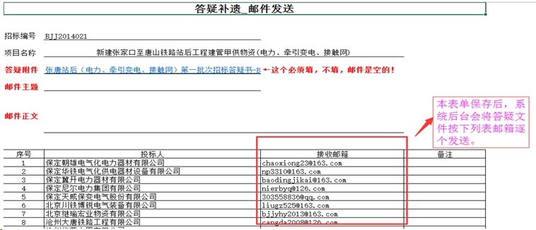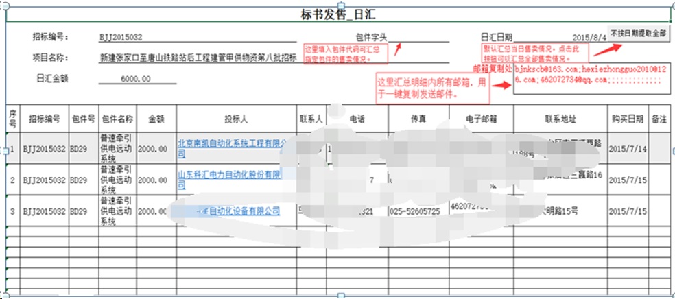 用于汇总当日标书发售情况,并复制邮箱集合,发送标书文件电子版