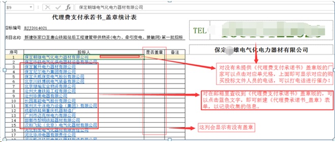 用于对购买标书的供应厂商回传盖章版《招标代理服务费承诺书》的登记,以备统计未回传的供应厂商