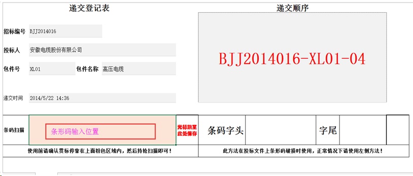 用于开标现场收取投标文件时快速登记(已实现扫码枪快速扫描条形码自动录入系统)