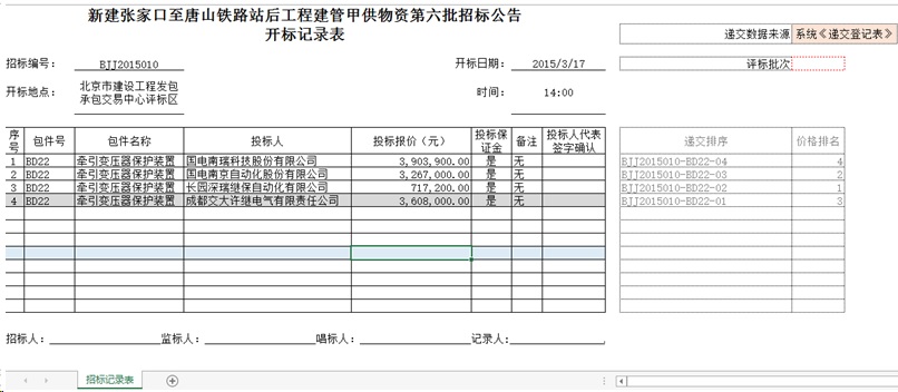 • 该系统是通过中铁物总国际招标有限公司招开标工作的参与,了解相关的业务流程而开发设计,并经过了张唐铁路招投标工作的实际应用。