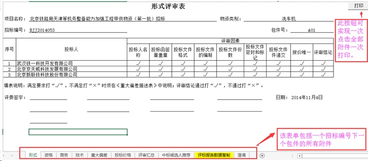 用于进入评标室的专家快速打印评标附表。(本表单是保存《开标_记录表》后系统自动生成的)