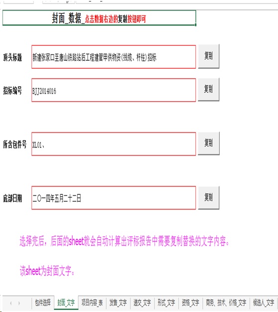 以下sheet的内容与评标报告复制替换方法如上,在此不再累述。