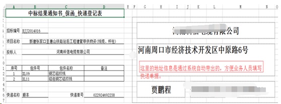 用于退寄非中标企业的中标结果通知书和投标保函的快递单号信息,以备后期查询。