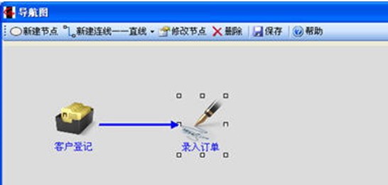 将多个节点依法用直线连接后,便可构建起一个完整直观的“导航图”。可将“导航图”加入到自定义栏目中,栏目中可以包含“导航图”(在栏目定义窗口中),在“包含功能模块”选项上,可以选中“导航图”,添加到“已选模块”中,还可以把“导航图”设为栏目的首选项。如果一个栏目的功能模块中包含“导航图”,则用户在栏目中操作的时候,可以随时点击栏目工具栏中的“导航图”按钮,下拉出本栏目中的所有“导航图”名称,进行切换。如果“导航图”被设为栏目的首选项,则已进入栏目,就会立即显示“导航图”。