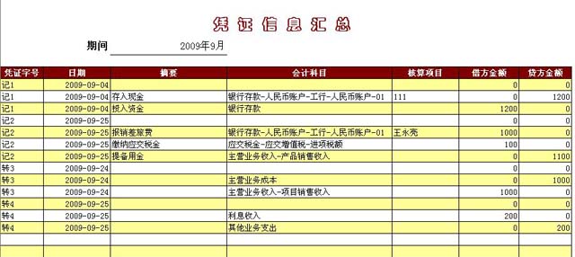 汇总某一会计期间的所有凭证信息。