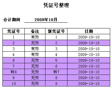 (2)把当前会计期间的所有凭证号,整理一遍,去掉中间的跳号。按顺序编。适用于有凭证被删除,发生跳号的情况。
