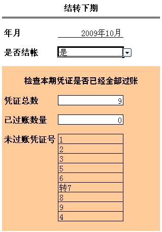 ()选择一个会计期间后,系统会自动提取该期间的凭证总数和已过账凭证的数量,并且列出了未过账的凭证号。