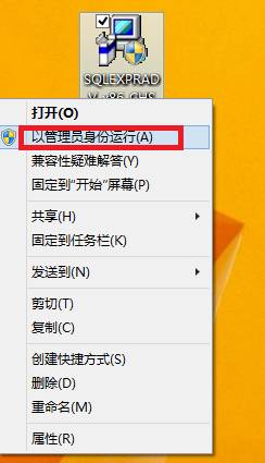- 选中SQLEXPADV_x86_CHS.exe,选择右键菜单“以管理员身份运行”
