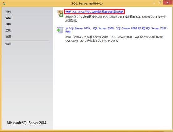 - 点击“全新SQL Server独立安装或向现有安装添加功能”