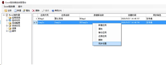 在服务器A中系统管理台-应用系统列表中单击右键,选择同步设置。