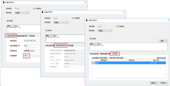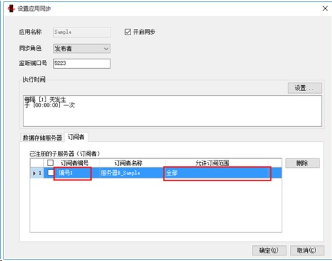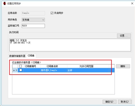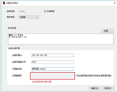 在服务器B中指定Sample数据库为订阅者,设置执行时间、注册主服务器信息
