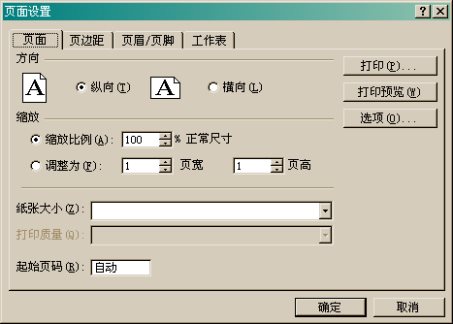 - 在“页面”选项卡上,可以指定纸张大小、打印方向、页边距等等。