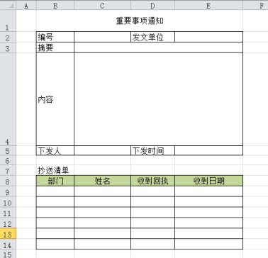 此通知单模板的工作流有三步,第一步是下发,下发人填通知的,并且选择抄送人(下面的抄送清单表格中的部门和姓名两列);下发保存后,对抄送清单中列出姓名的每个人发送待办事宜,每个人在写着自己姓名的那一行中签收。当所有该签收的人都签收了之后,最初下发的人会接到一个待办事宜,通知她(她)所有人都已经签收了。