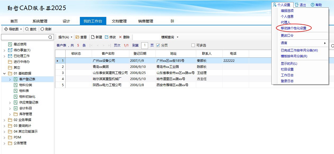 1.客户端登录后点击【个人设置】-【移动端个性化设置】: