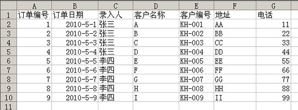 怎样区分呢?因为“订单_主表”的主键是“订单编号”,也就是说,只要知道订单编号,就能唯一地确定一份订单,所以,我们对每一条明细数据也都标注其所在的订单号,如下图所示,我们在明细表上增加一个字段“订单编号”,相应地在需要导入的明细表Excel文件中也增加这一列,靠这列的值和主表中哪条记录的订单编号列相等,来识别每条明细应该归属于哪份订单。