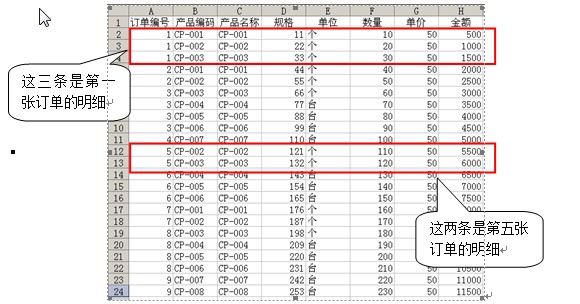 当我们实际填报一份订单的时候,是不用关心上述问题的,因为正填报的订单就是一份,无论多少条明细,都是这一份订单的明细,但当成批导入数据的时候,就不是这么简单了,我们必须能够区分这“大批”的订单明细数据是怎样划分成一张张订单的。