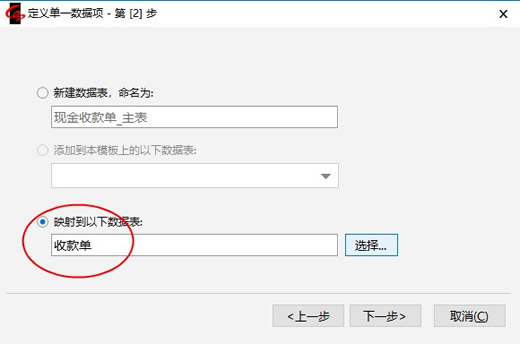 在《现金收款单》上定义数据项,映射到“收款单”数据表