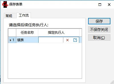 - 填报《员工调查表》,在空表格上什么也不用填,直接保存,弹出“保存表单”对话框,切换到“工作流”选项卡,如图,点击“填表”右侧的编辑按钮。