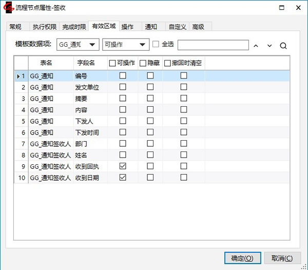 2.切换到“有效区域”标签上,勾选本步的可操作字段。