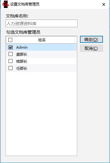 4.想设置某个用户为文档库的管理员,则勾选此用户姓名即可;想收回某个用户的管理员权限,取消勾选该用户姓名即可。