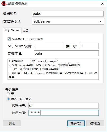 本节我们把SQL Server 中自带的例子数据库pubs注册为外部数据源。